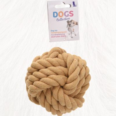 DOG ROPE BALL 13CM Knotted Braid Pet Rope Beige Cotton Pet Dog Ball