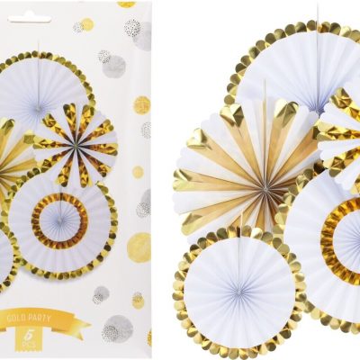 FAN PAPER GOLD SET OF 5PCS Wedding Baby Birthday Paper Party Decorations - GOLD