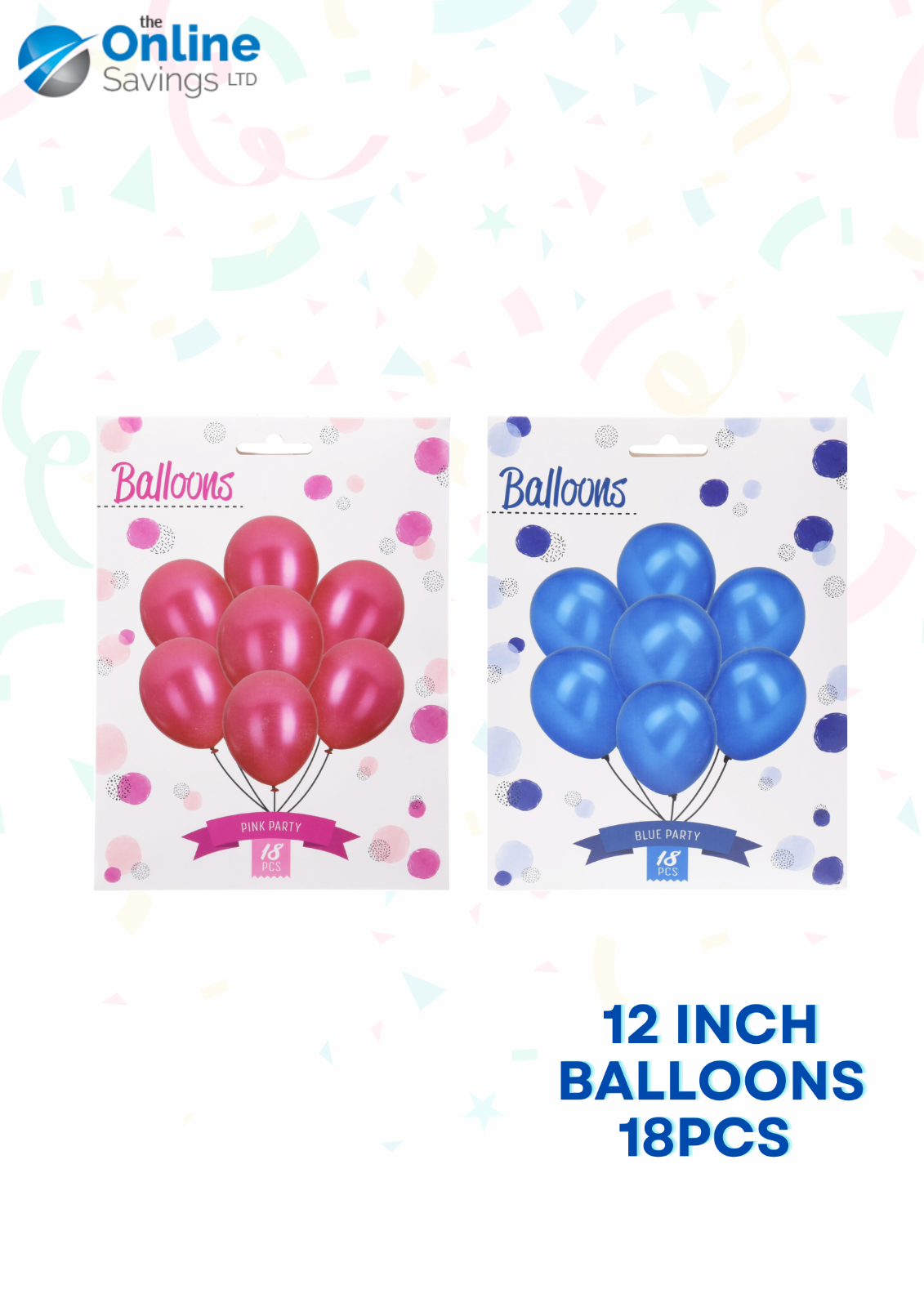 18PCS 12 INCH RUBBER BALLOONS PARTY BIRTHDAY WEDDING BLUE HOT PINK – 18 PCS
