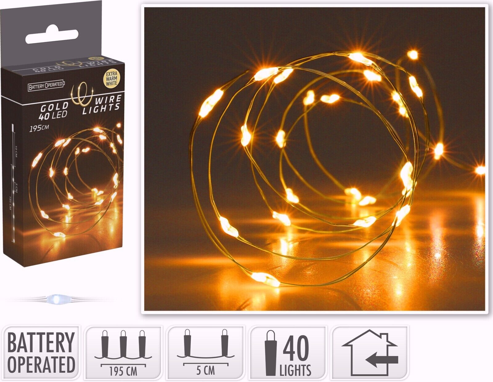 Fairy Lights 40 LED 195CM Ideal for Indoor Outdoor Decoration Christmas Tree