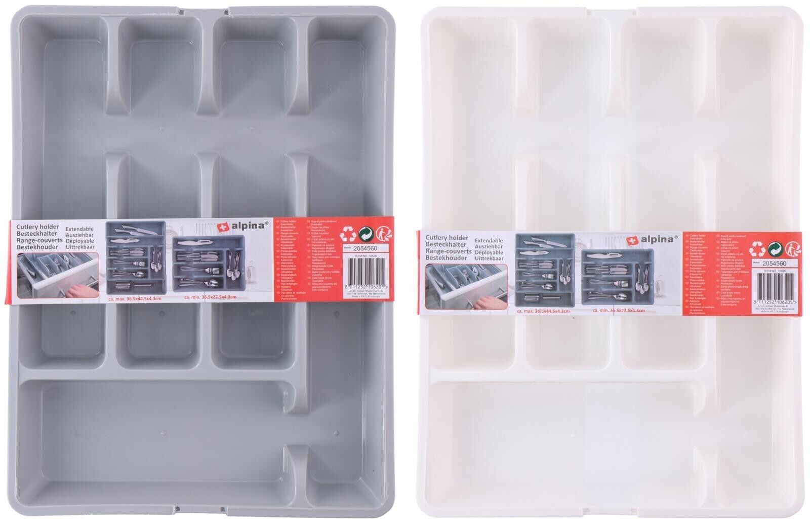 PLASTIC CUTLERY HOLDER TRAY WHITE GREY KITCHEN DRAWER ORGANISER EXPANDABLE