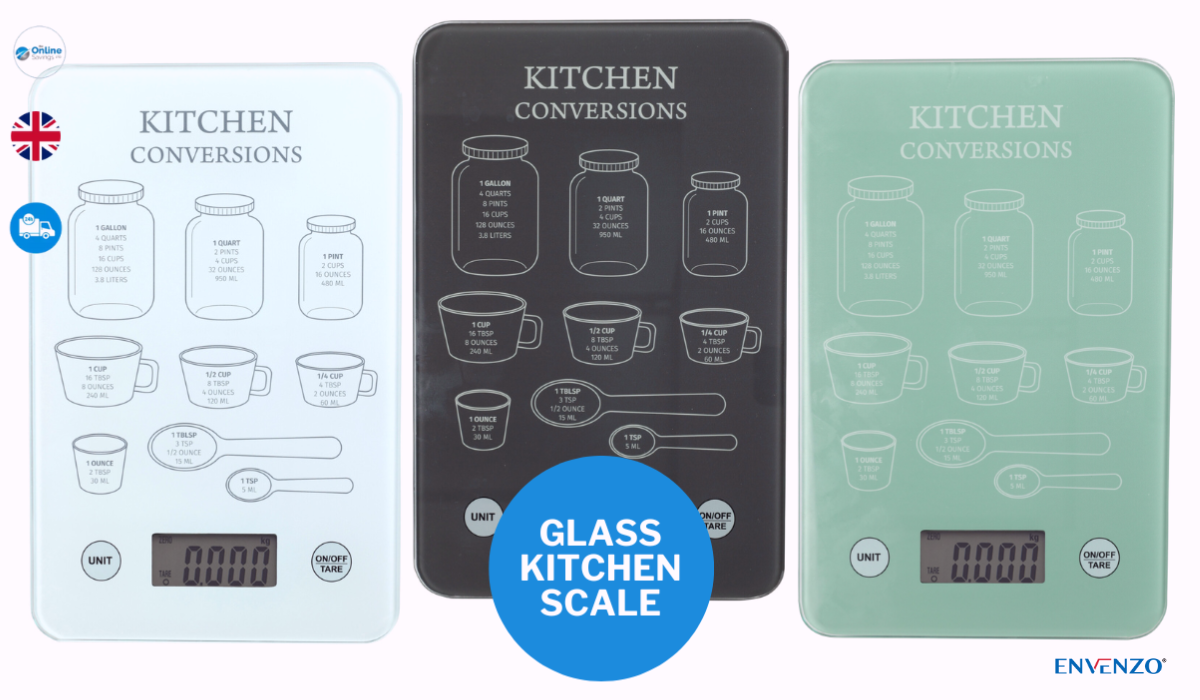 Kitchen Scales With LCD Display Tempered Glass Battery Operated with Easy Measurements ConversionÂ