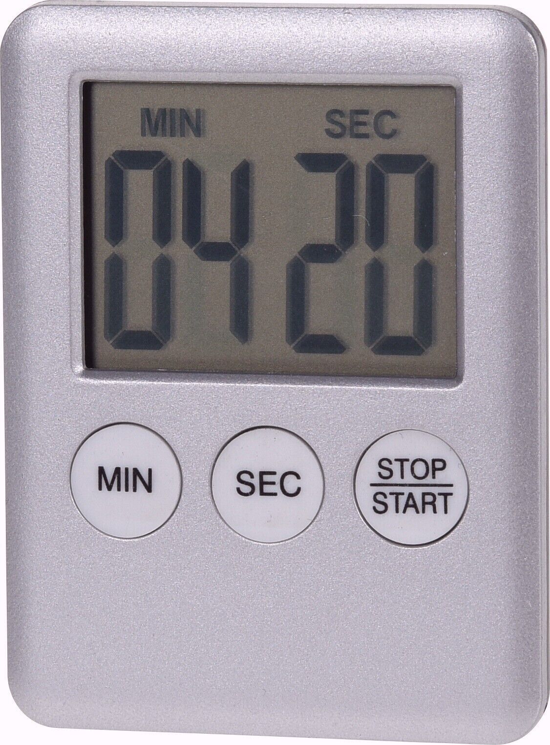 - Never let your pastries, cakes, cookies or other treats burn again with the help of this Digital Timer Silver. This timer can be set to the second, so you can always set the exact time. In addition, there is a magnet on the back of the timer, so you can hang it on the refrigerator.